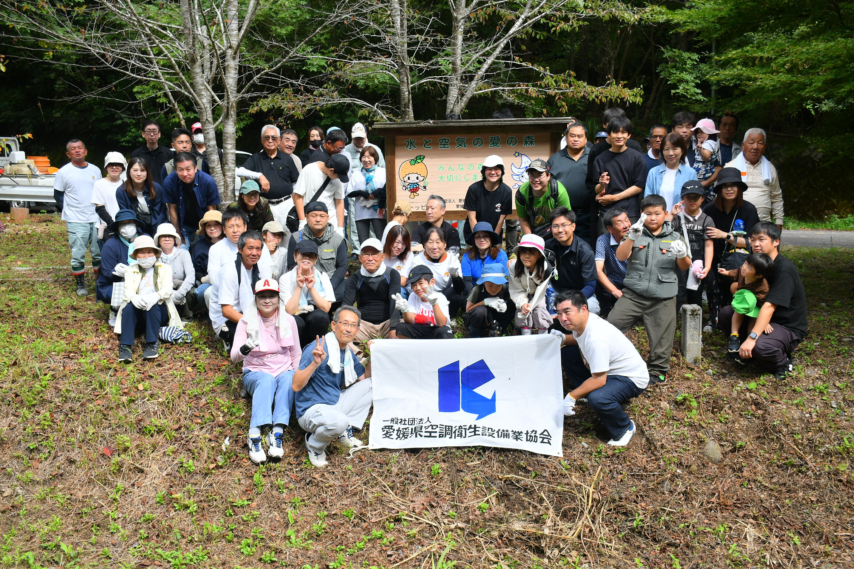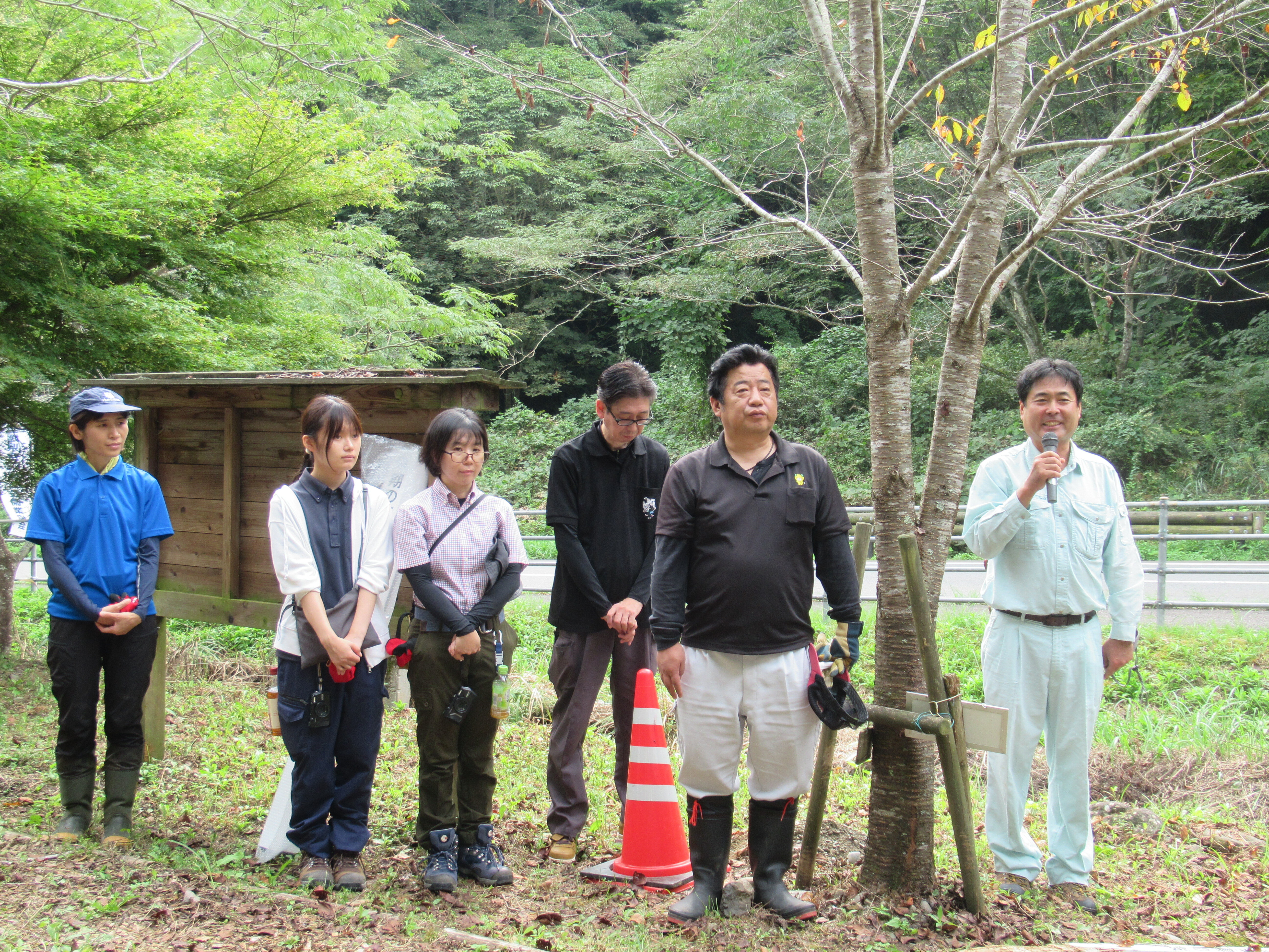続いて愛媛県中予地方局の久万高原森林林業課職員2名、久万高原町林業戦略課職員6名の皆さんを紹介した後、全員で記念撮影を行い活動に入りました。