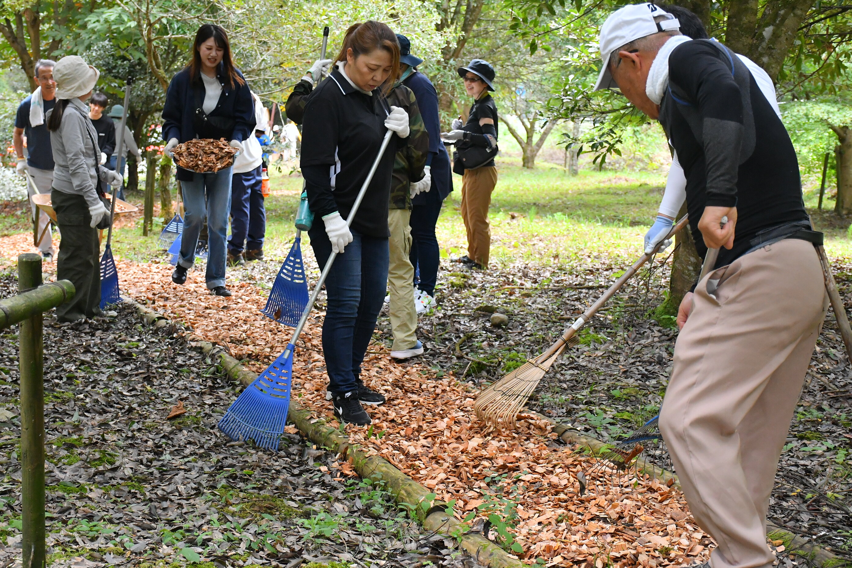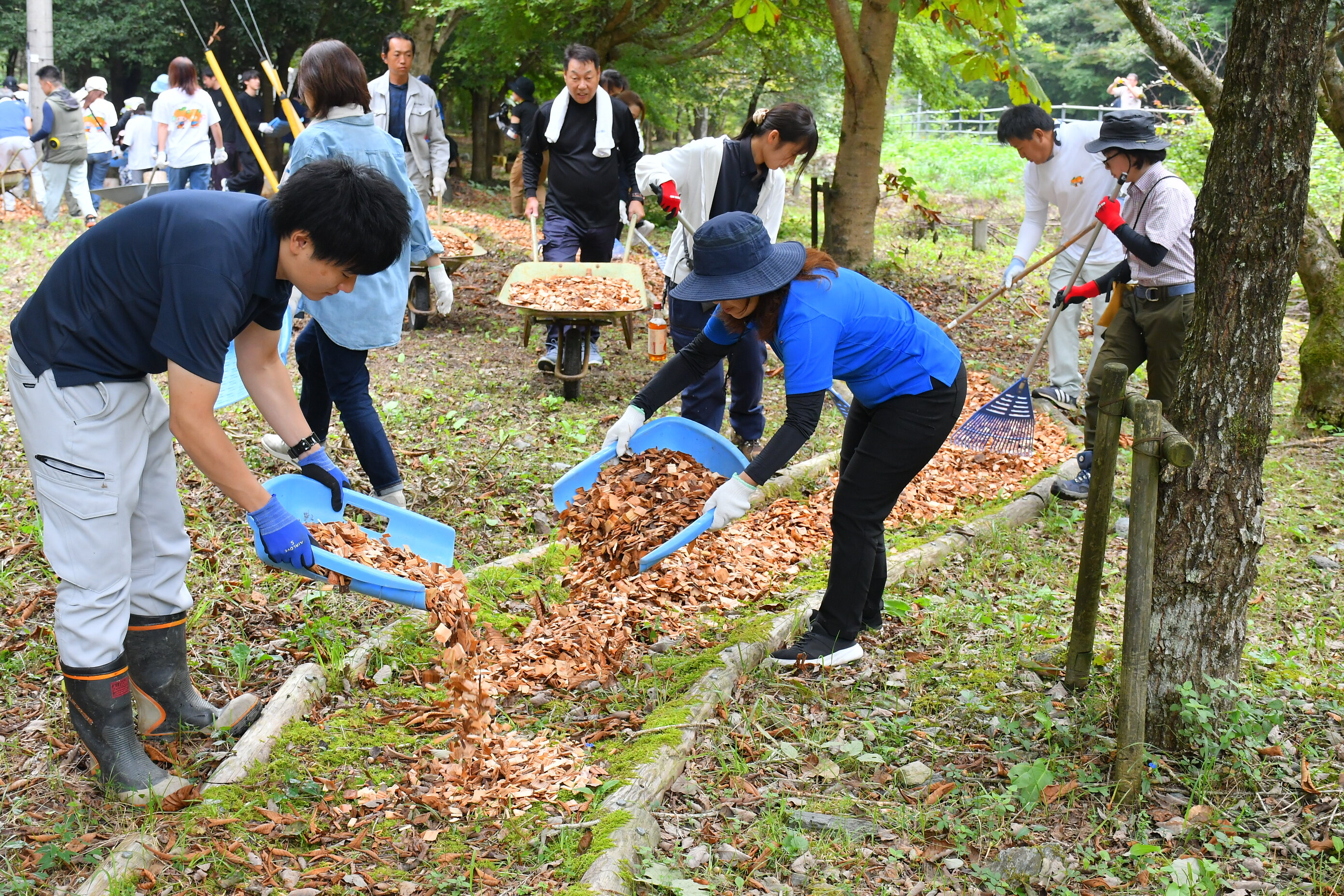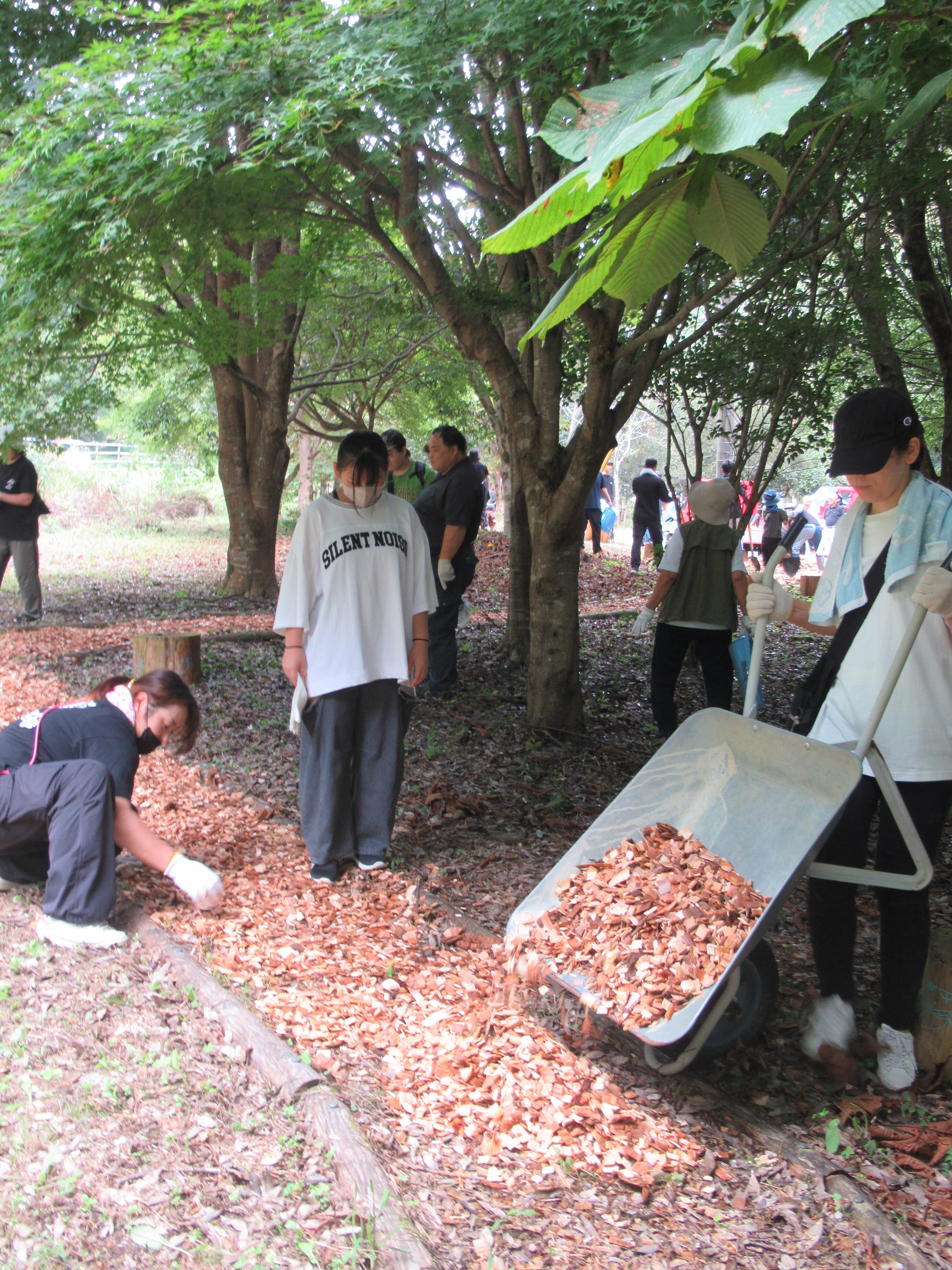 ただでさえ秋は空模様が変わりやすいのに、猛暑が続いた影響からか、台風が本土近くで発生して翌日には上陸したり、同時に複数発生するなど例年と違う気象が相次ぎ、行事当日まで天気予報から全く目を離せない日々でしたが、蓋を開けると暑すぎず雨の心配もない曇り空で、森林ボランティア活動を快適に行うことができました。