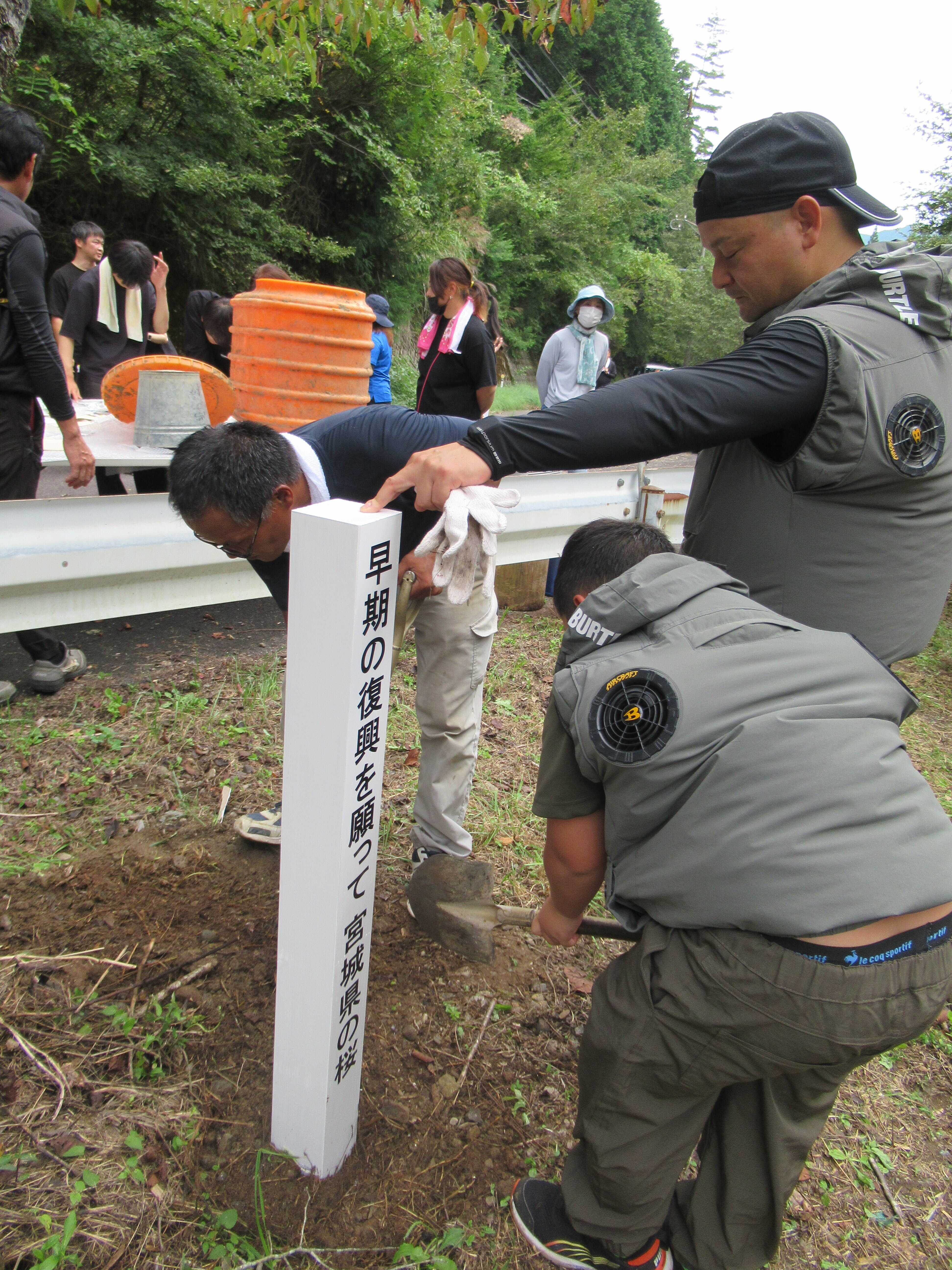 その後、陽光桜1本の植樹と標柱の更新を手分けして行い、無事に作業は1時間ほどで終了しました。