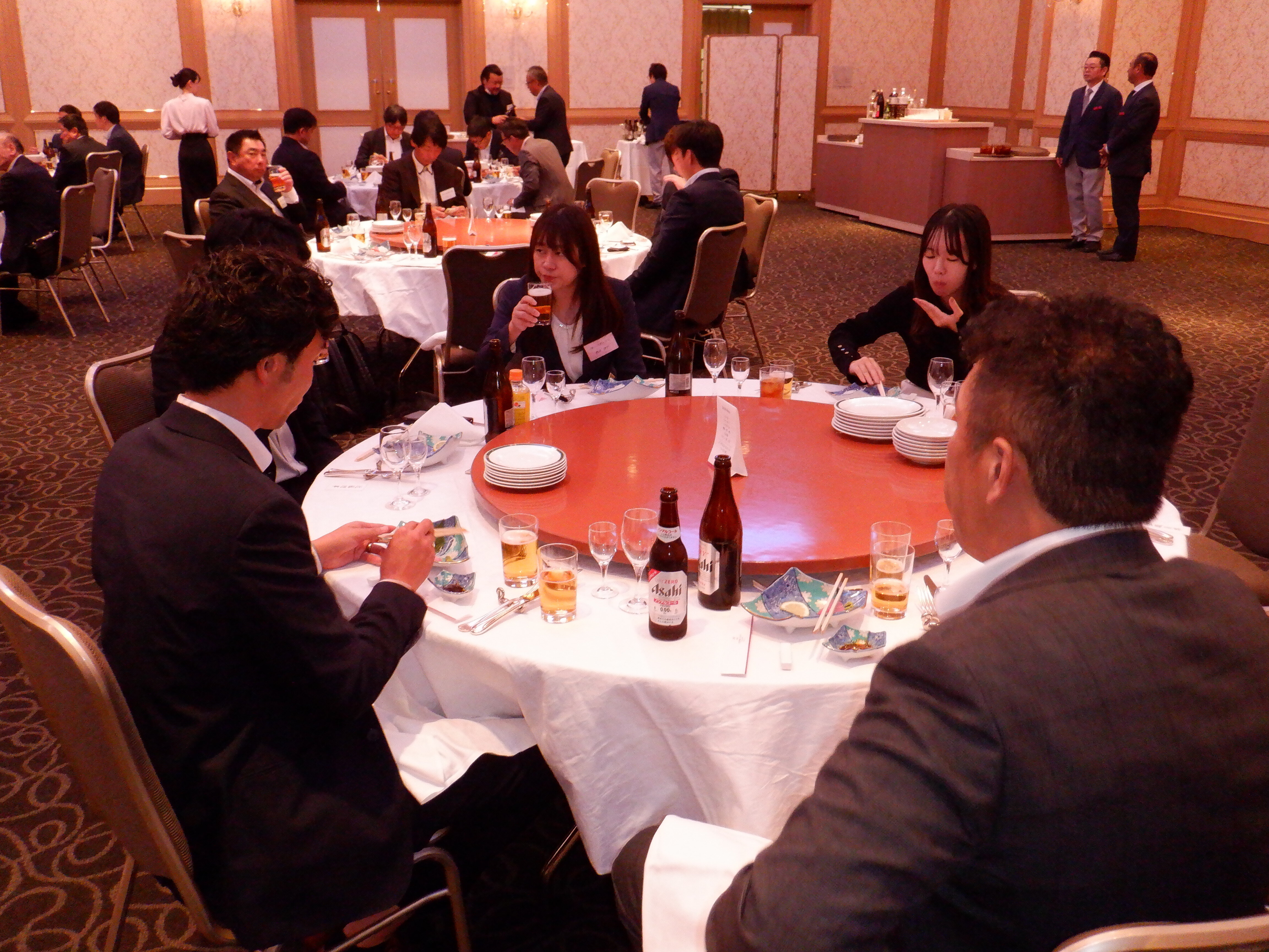 総務委員会担当の清水副会長の乾杯で宴会がスタートし、今回も皆さんは席を思い思いに移動しながら語り合う姿があちらこちらで見られ、瞬く間に中締めの時間です。