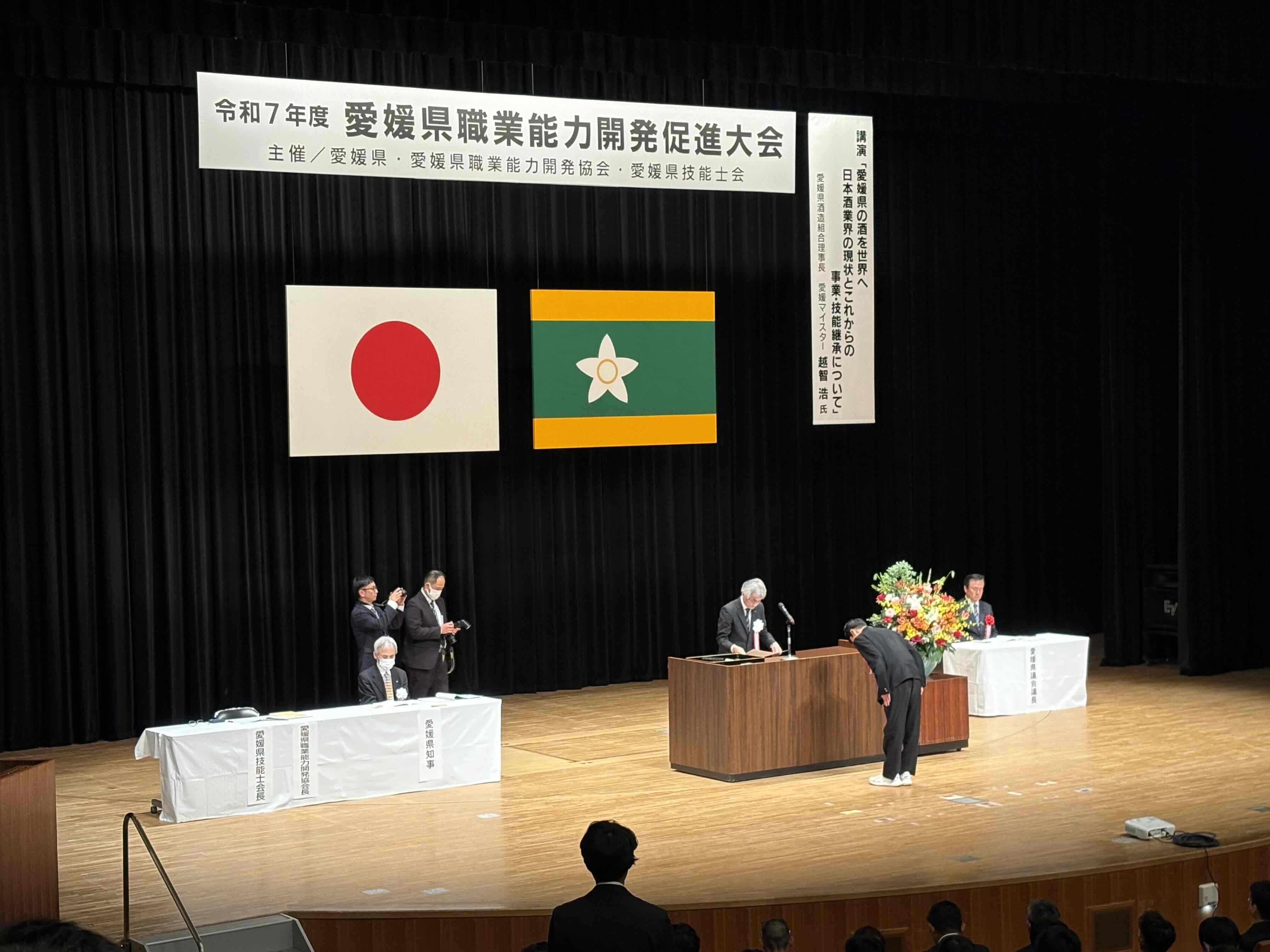 令和7年度愛媛県職業能力開発促進大会が松山市で開催され、優れた技能を持った方々や、職業訓練、技能振興などに功績のあった個人・団体に対する表彰式が行われました。