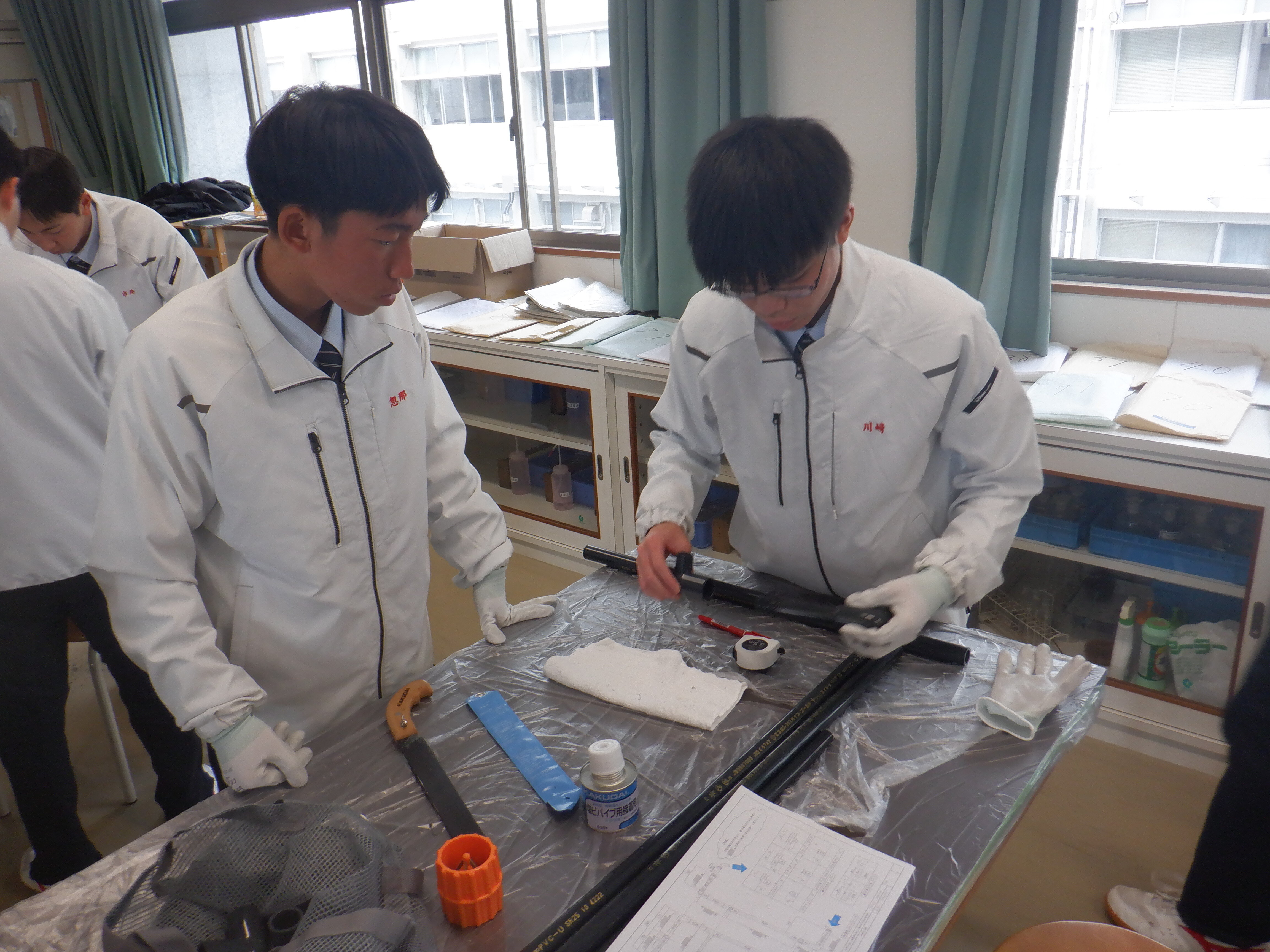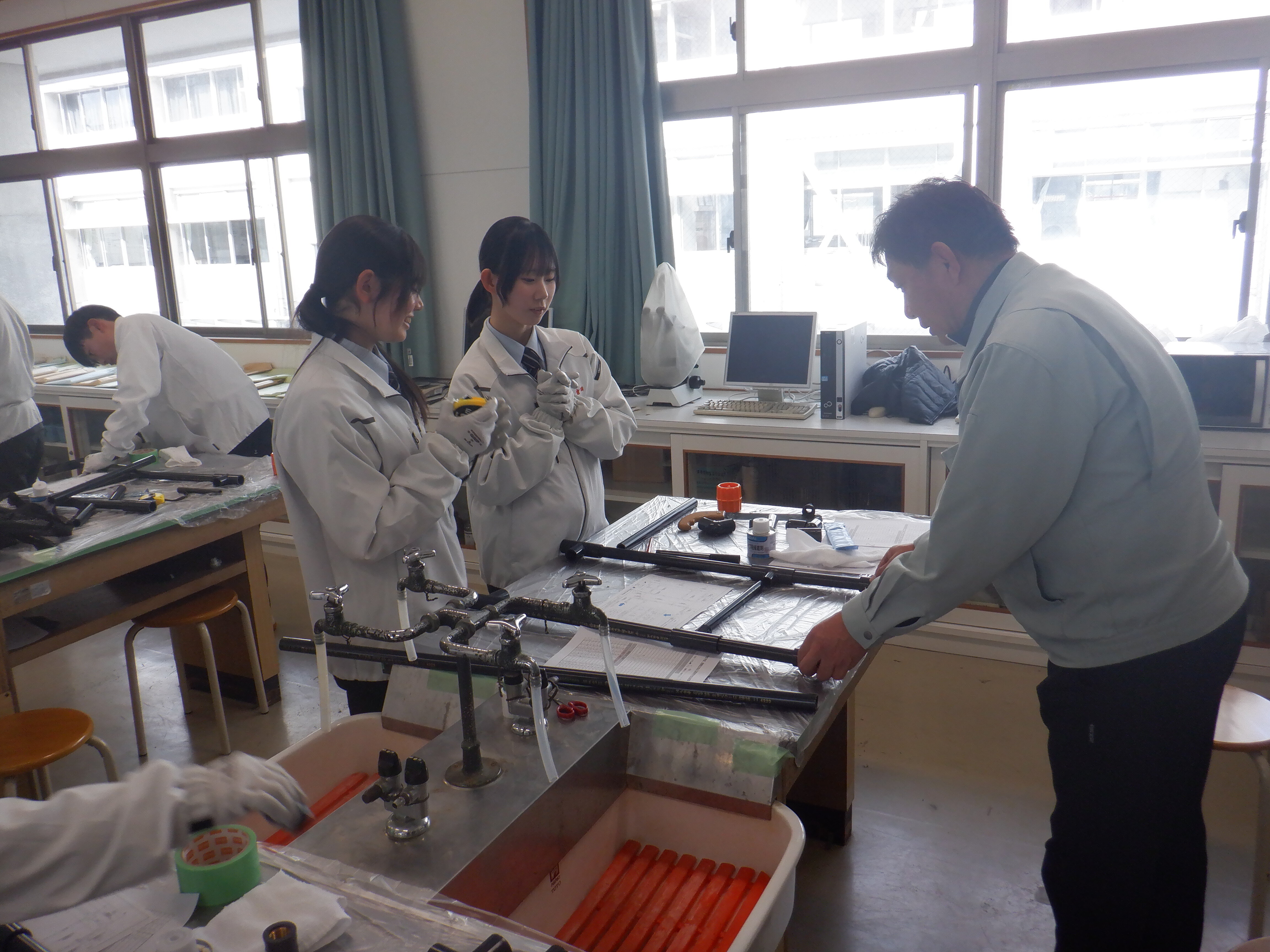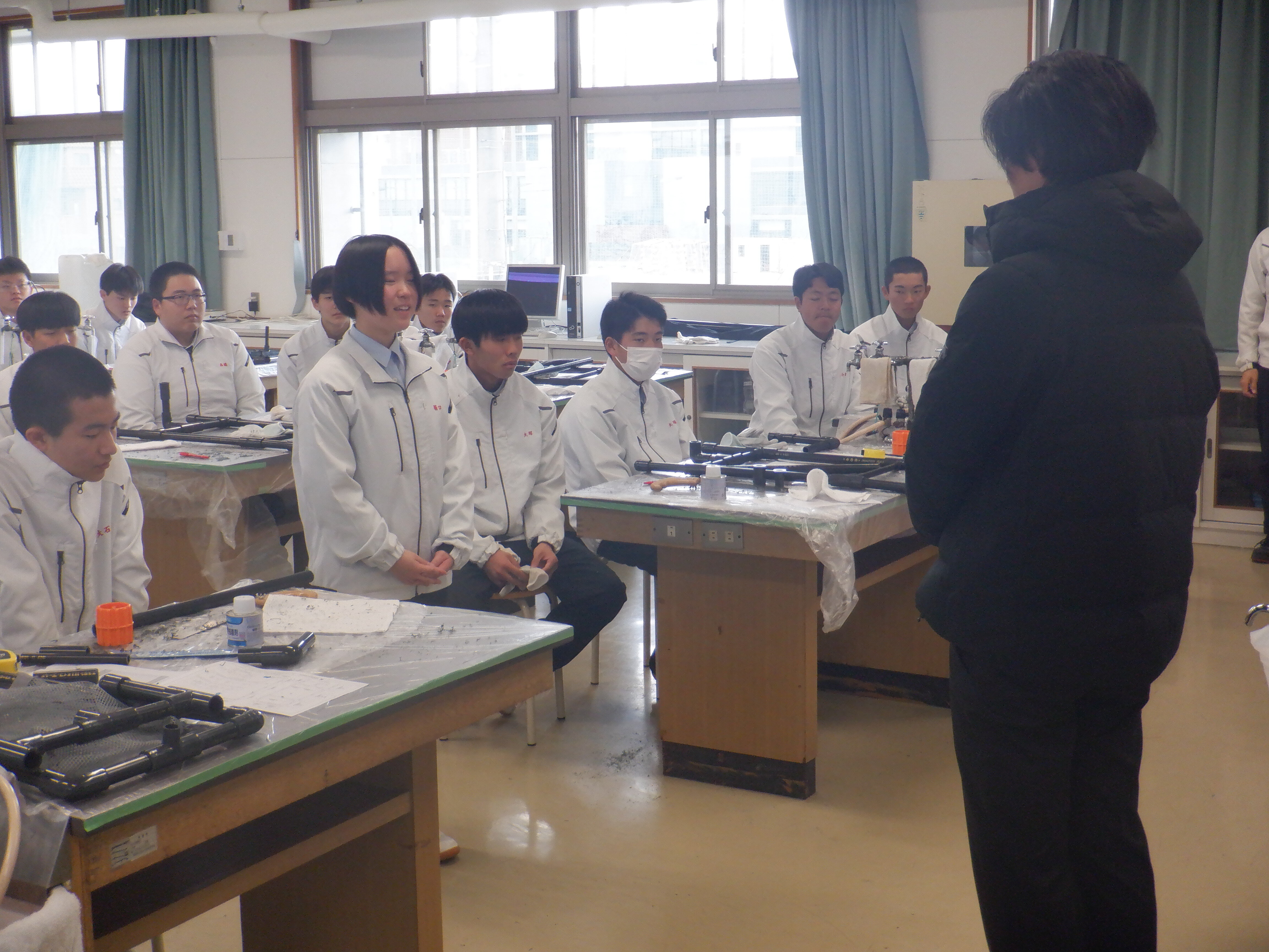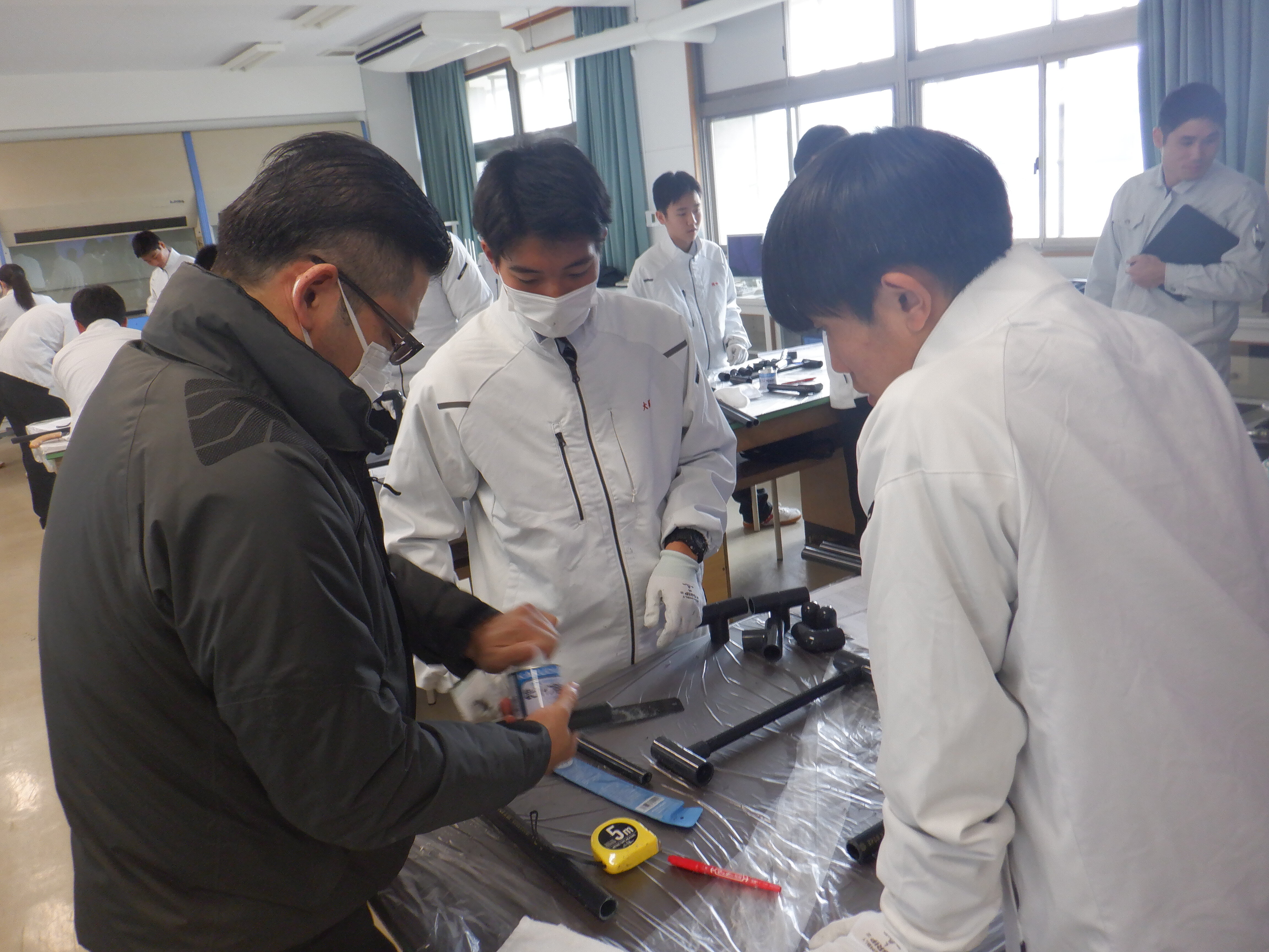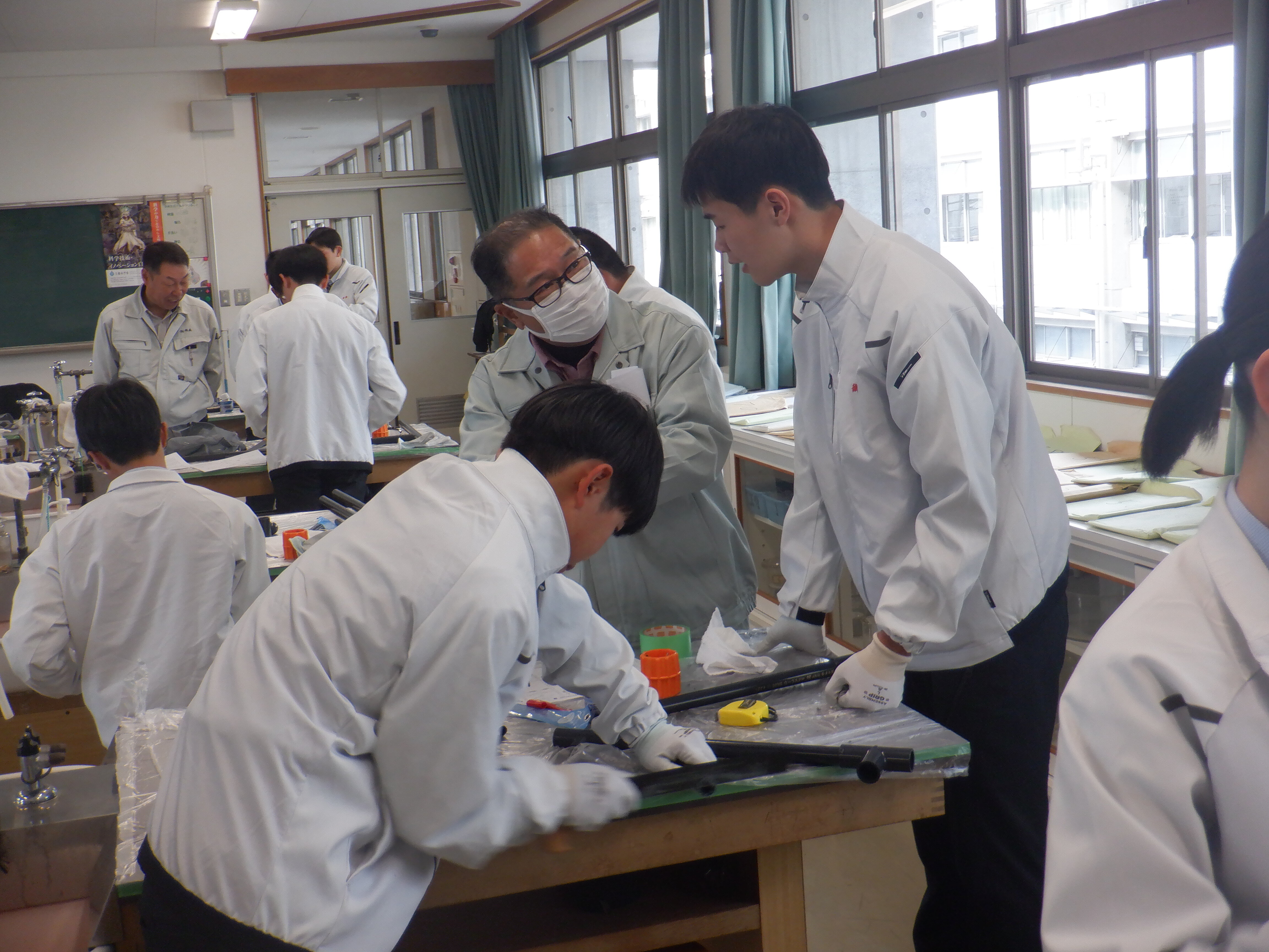 松山工業高校の「みらいの学び地域産業人材育成事業(匠の技教室)」に講師を派遣して出前授業を行いました。昨年度は学校側の都合により午後2時限の短縮開催でしたが、今年度はいつもの午前中3時限の授業となり、協会講師陣も余裕あるペースでの実施が可能となりました。
